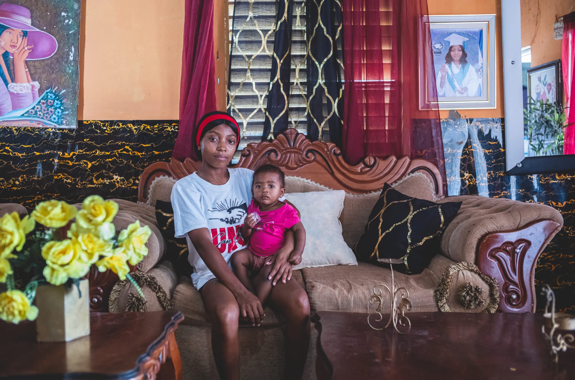 Clarissa, 16, photographed at home with her baby in their bedroom in Santo Domingo.Emely, 17, rests on the bed watching her 3-year-old son in their home in Las Terrenas. A heart tattoo bearing his name marks her arm. Now pregnant with her second child from the same relationship with an older partner, Emely lives with her aunt and grandmother. She says she was expelled from school after her first pregnancy and never returned. Classmates told her her life was over. She spends most of her time at home, partly due to a high-risk pregnancy and partly because of stigma.Alessandra, 17, stands in the doorway of her home in Dajabón. She gave birth to a boy the following day. The baby’s father works near Santiago, a three hour drive away, and was not present. Alessandra lives with her mother, her primary support. Dajabón is a border province with one of the country’s highest rates of adolescent pregnancy.Yulissa, 17, studies with classmates during her final days at the public school in Barahona. Nine months pregnant, she is preparing for the national university entrance exam. Despite the physical strain of late pregnancy, she continues attending classes daily, determined to graduate.Girls and women from the National Confederation of Rural Women (Conamuca) march during a national demonstration in Santo Domingo against the Dominican government’s migration protocol, which has resulted in the detention and deportation of Haitian women immediately after discharge from maternity hospitals. Conamuca is a grassroots organization advocating for the rights of women and girls in rural and marginalized communities.Mylove, 15, an undocumented Haitian girl who does not speak Spanish, attends her first prenatal appointment at a private clinic in Barahona. An ultrasound reveals she is five months pregnant and expecting a girl. She has avoided the public health system out of fear of deportation. She is the eldest of several siblings and migrated from Haiti two years ago with her family, fleeing gang violence.Girls’ dresses hang in the sun to dry after being washed in Batey 5, Barahona province. Bateyes are rural settlements originally built around sugar mills and historically inhabited by Haitian and Dominican laborers. Many settlements continue to face limited infrastructure, restricted access to healthcare, and barriers to education.Yaqueisi, 17, changes her baby’s clothes inside their home in Batey 5. Three of her sisters are nearby. Early motherhood spans generations in her family: her father was 17 and her mother 14 when they had their first child. On the day this photograph was taken, the batey had been without electricity for a week – an interruption residents describe as common.Carolina, 17, gets eyelash extensions at a beauty salon in Dajabón on Mother’s Day. At just 12, she entered an “early union” with her first boyfriend, who was 18 years old. Child marriage remains common in the region and is associated with school dropouts, early motherhood and limited access to opportunities. Carolina gave birth at 15 and stayed in the relationship for seven years. Today, she lives with her parents and her daughter.The owner of a casa clave displays condoms inside her home in Dajabón. A casa clave – literally “key house” – is a discreet, community-run space where adolescents can obtain contraceptives, particularly condoms, without drawing attention or having to ask family members. This woman, who requested anonymity to protect the confidentiality and safety of the adolescents who visit, became a mother as a teenager and says she does not want other girls to have the same experience. According to her, many of the adolescents who come seeking contraceptives are Haitian, living in precarious conditions and hesitant to approach formal health services.Leidy, 17, poses for a portrait with her two-year-old daughter at their home in Batey Cuchilla, Barahona, on 15 May, 2025. She says her greatest accomplishment was graduating from high school. She now lives with her parents and, although she is not currently studying or working, helps with household tasks. In rural bateyes like this, early motherhood often disrupts girls’ education and narrows their future opportunities.