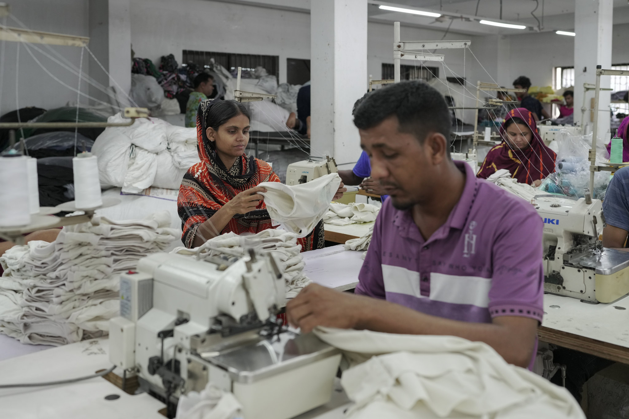 In the capital, she hoped to double her income. She wanted her children to grow up in better conditions and maybe even become something other than garment workers. After the family moved in January 2024, she says she found a job as a sewing machine operator at a factory that exports clothes to international brands such as Walmart, GAP, American Eagle and H&M.